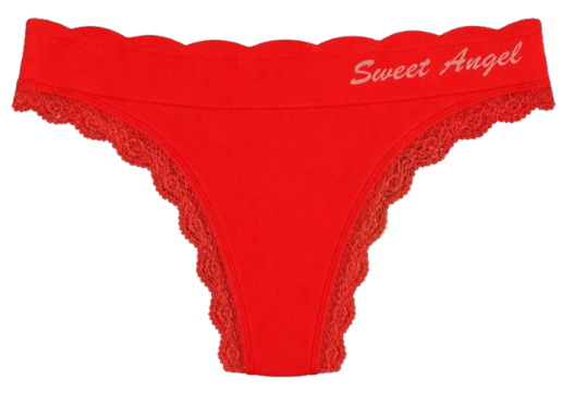 Deze rode Sweet Angel string is precies wat je zoekt als je comfort en uitstraling wilt combineren. Geen zichtbare lijnen, geen knellende randen – gewoon een string die mooi aansluit en de hele dag prettig zit. De subtiele kanten afwerking geeft nét dat extra vrouwelijke detail zonder in te leveren op draagcomfort. De string is afgezet met zachte kant, afgewerkt met een fantasieboord en voorzien van een katoenen kruisje.