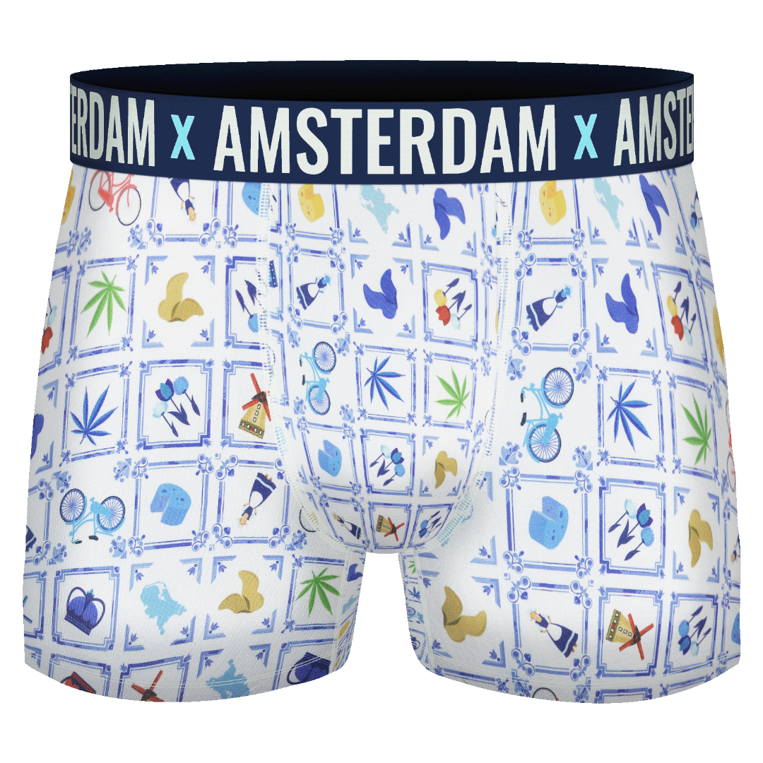 Met een iconische Delfts Blauwe print en typisch Nederlandse details, zoals molens, fietsen en tulpen, brengt deze boxershort een unieke mix van traditie en eigentijdse flair. De brede tailleband met "Amsterdam"-logo versterkt de stedelijke en moderne uitstraling. Dit model uit de 'Amsterdam Collection' is slechts tijdelijk beschikbaar, dus wacht niet te lang om jouw exemplaar te bemachtigen.