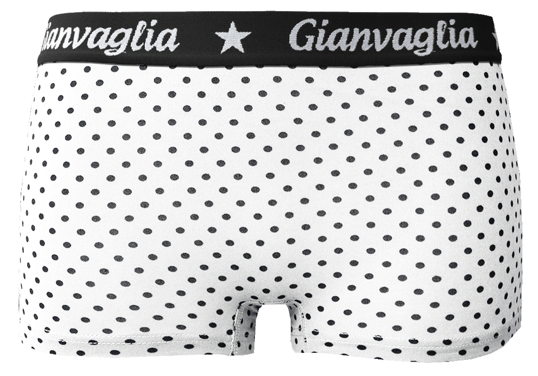 Meisjes boxer, Gianvaglia 817, stretch katoen, elastisch boord, zachte meisjesonderbroek, ademende stof, witte kinderonderbroek met zwart stippenpatroon